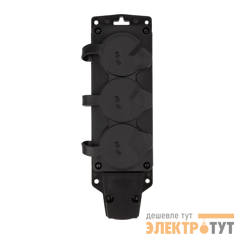 111-223 | Колодка удлинителя 3-м с заземл. 16А IP54 влагозащ. с защ. крышкой COMPACT каучук черн. Rexant