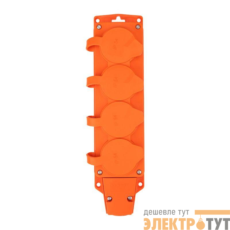 111-228 | Колодка удлинителя 4-м с заземл. 16А IP54 влагозащ. с защ. крышкой COMPACT каучук оранж. Rexant