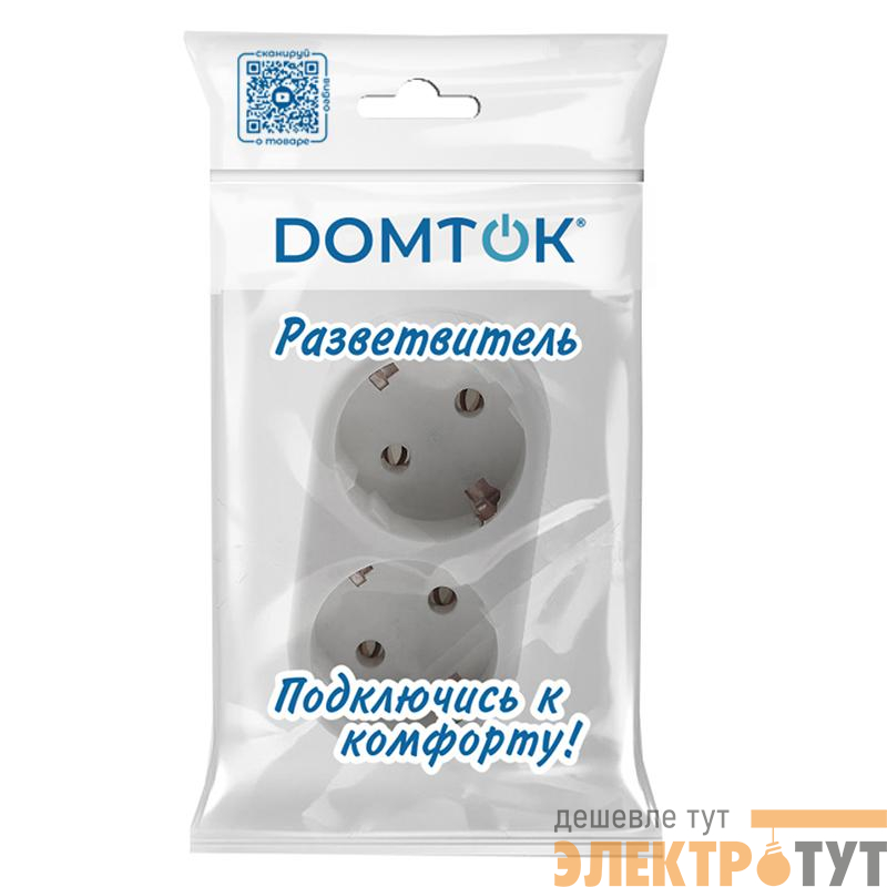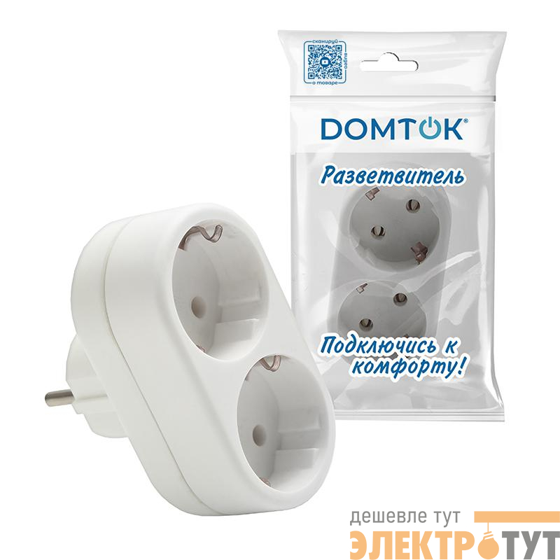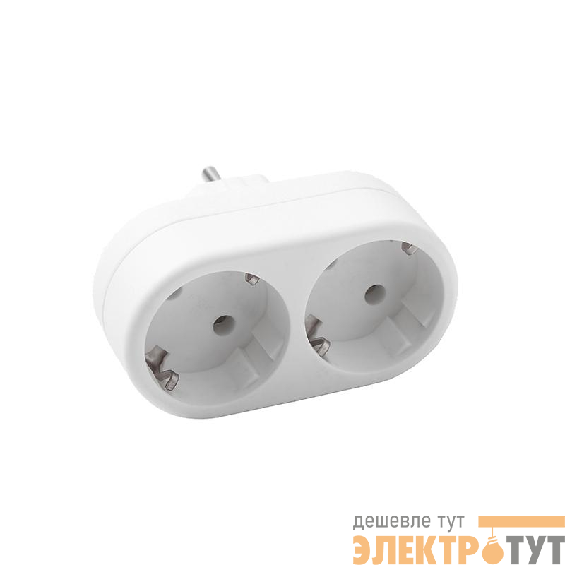 2653 | Разветвитель 2-м плоский с заземл. 16А 3500Вт 250В бел. DОМТОК