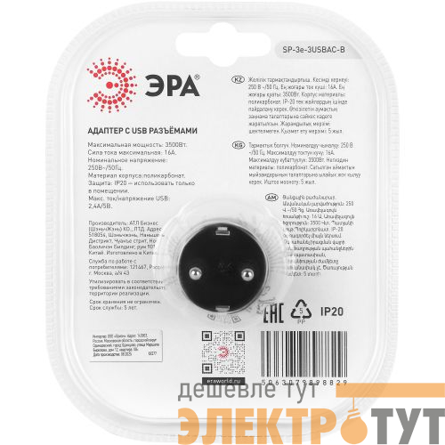 Разветвитель электрический тройник 3 розетки c заземлением 16 А SP-3e-3USB-B, 3 USB A+C. Сетевой разветвитель (тройник) ЭРА. Максимальная мощность - 16А/3500 Вт, Эксклюзивный продакт-дизайн. Как ищут люди: разветвитель для розетки переходник, y разветвитель сетевой, переходник удлинитель для розетки, переходник в розетку в разетку, переходник для разетки, переходник разетка, переходник на розетку, переходник розетка, разветвлитель, тройник для розетки, розетка тройник, тройник электрический в розетку, тройник переходник эра, тройник в розетку плоский, тройники, удлинитель тройник сетевой, тройник 1/2 разветвитель.