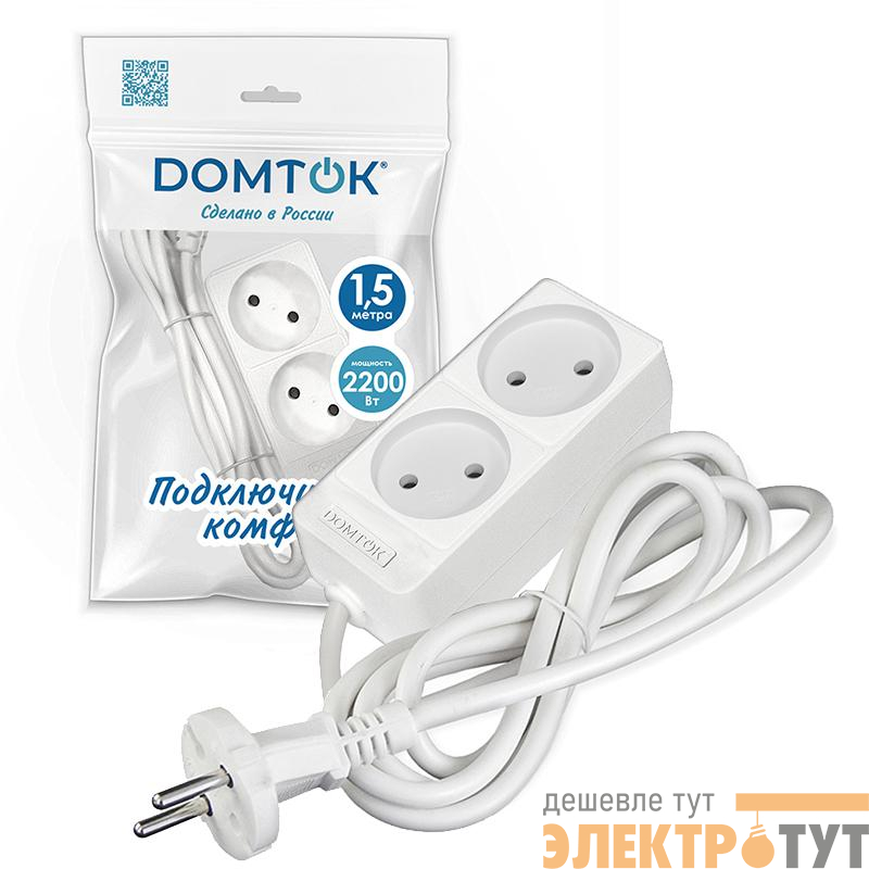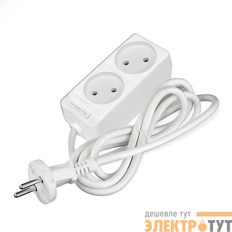 2344 | Удлинитель 2х1.5м без заземл. 10А IP20 2.2кВт ПВС 2х1 бел. DOMTOK