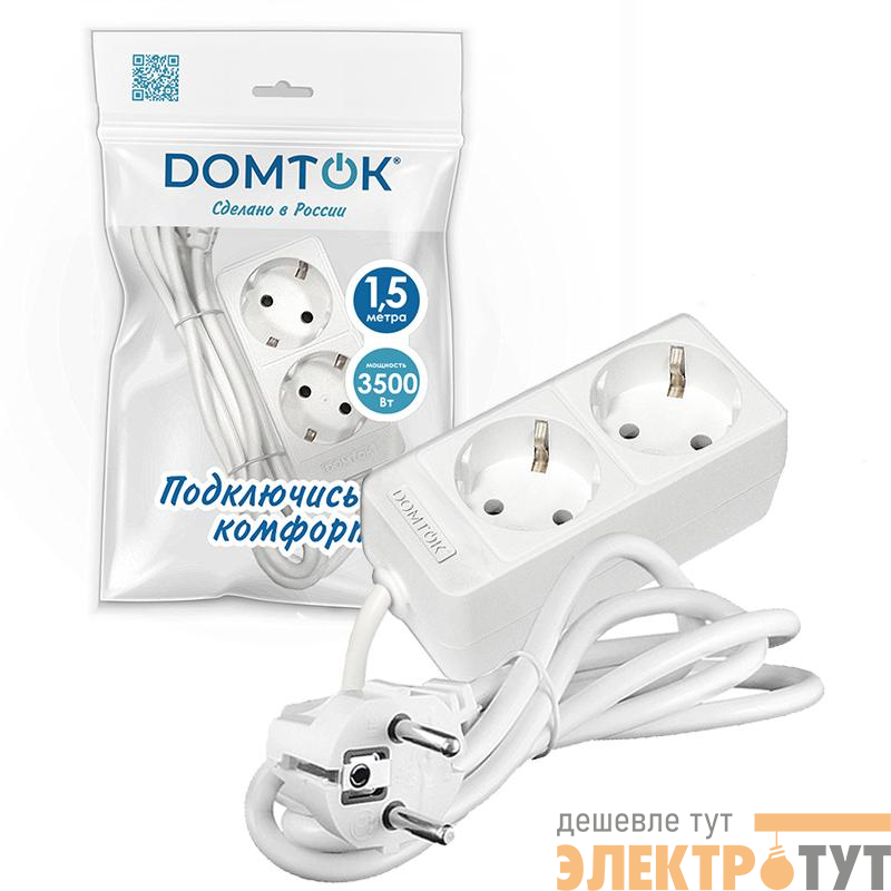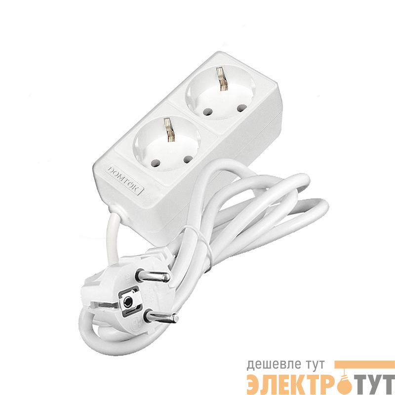 2384 | Удлинитель 2х1.5м с заземл. 16А IP20 3.5кВт ПВС 3х1 бел. DOMTOK