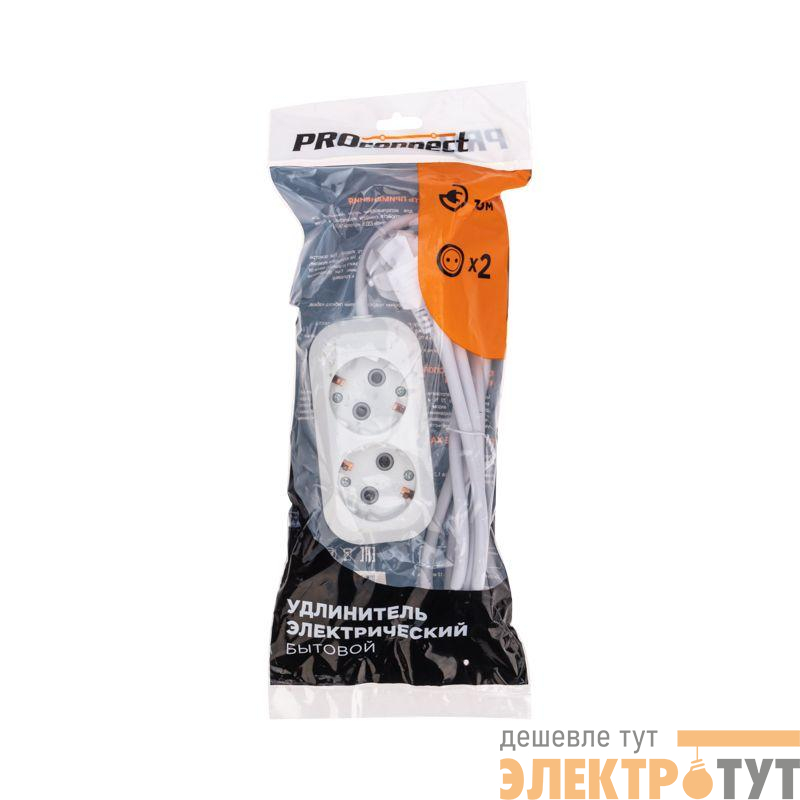 13-4202 | Удлинитель 2х1.5м с заземл. 3х0.75 бел. PROCONNECT