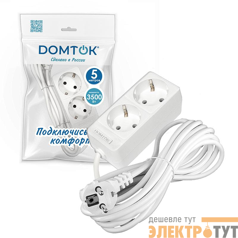 2387 | Удлинитель 2х5м с заземл. 16А IP20 3.5кВт ПВС 3х1 бел. DOMTOK