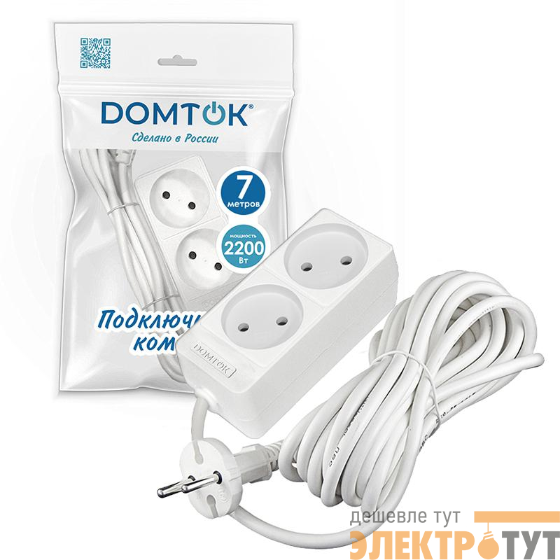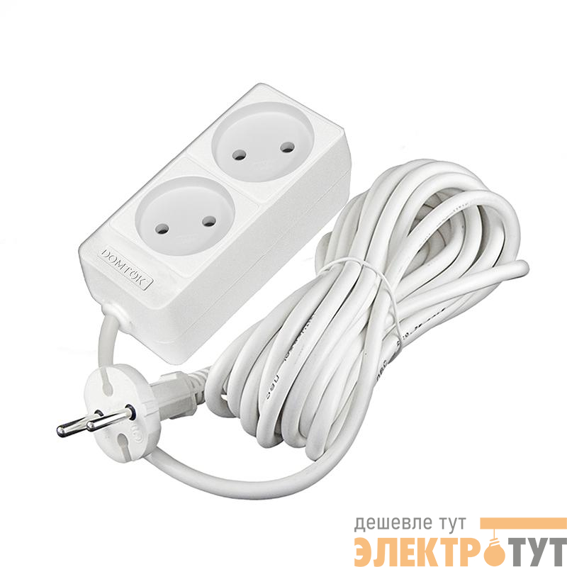 2348 | Удлинитель 2х7м без заземл. 10А IP20 2.2кВт ПВС 2х1 бел. DOMTOK