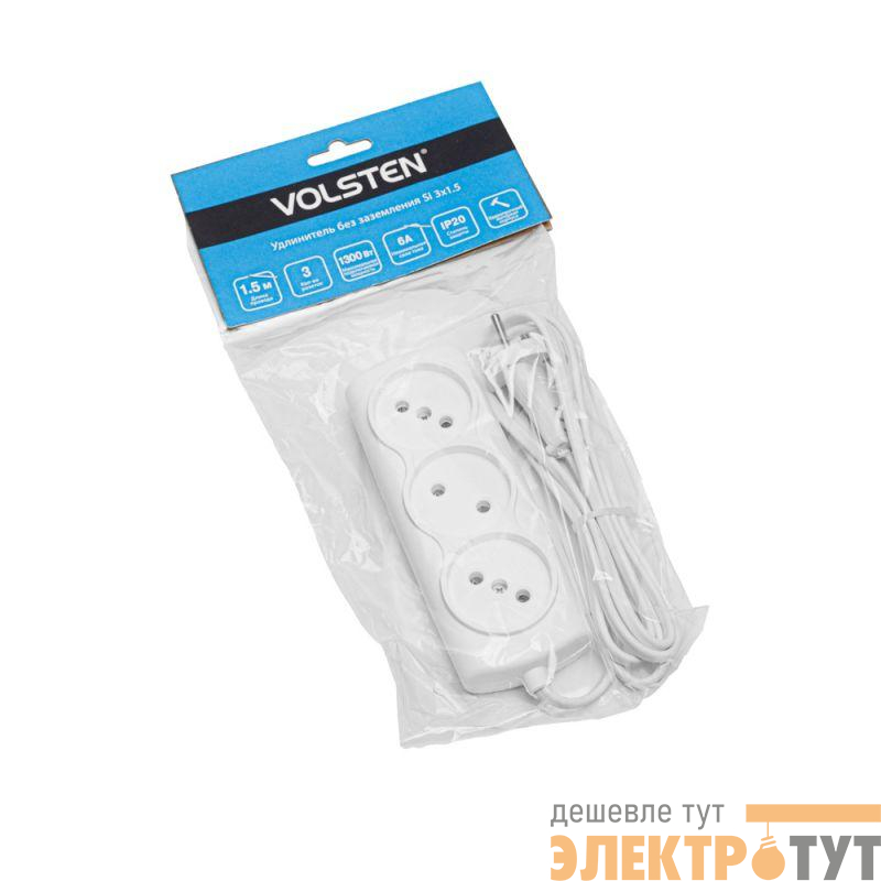 13583 | Удлинитель 3х1.5 6А 6А 1300Вт ШВВП2х0.75 модель Р16-010 Si Volsten