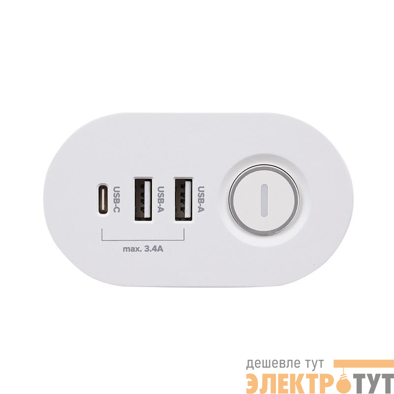5059535 | Удлинитель 3х1.5м на струбцине с заземл. с выкл. 3 USB выхода (2А+1С) IP20 ПВС 3х1 ETD-03U-150-wh (3х1.5) бел. JAZZway