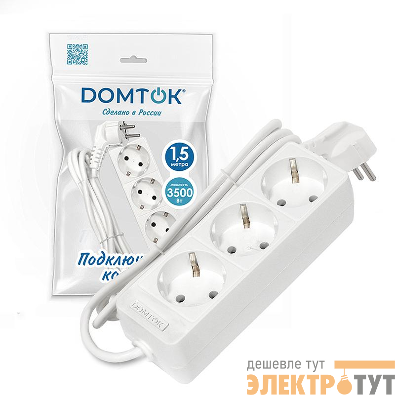 2389 | Удлинитель 3х1.5м с заземл. 16А IP20 3.5кВт ПВС 3х1 бел. DOMTOK