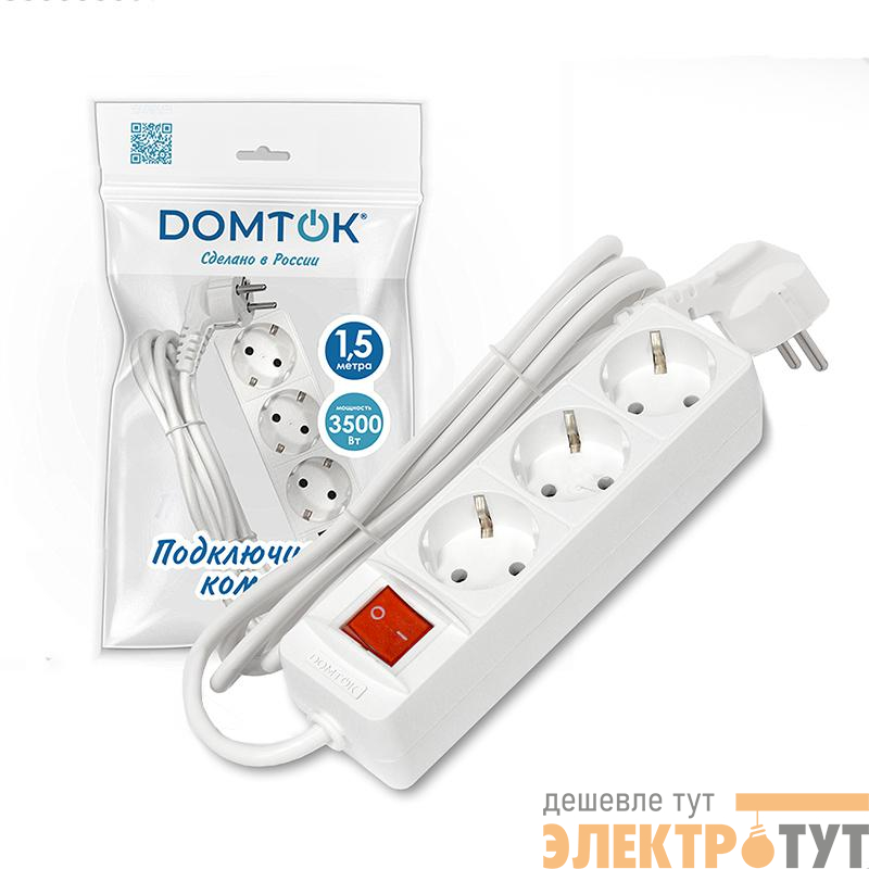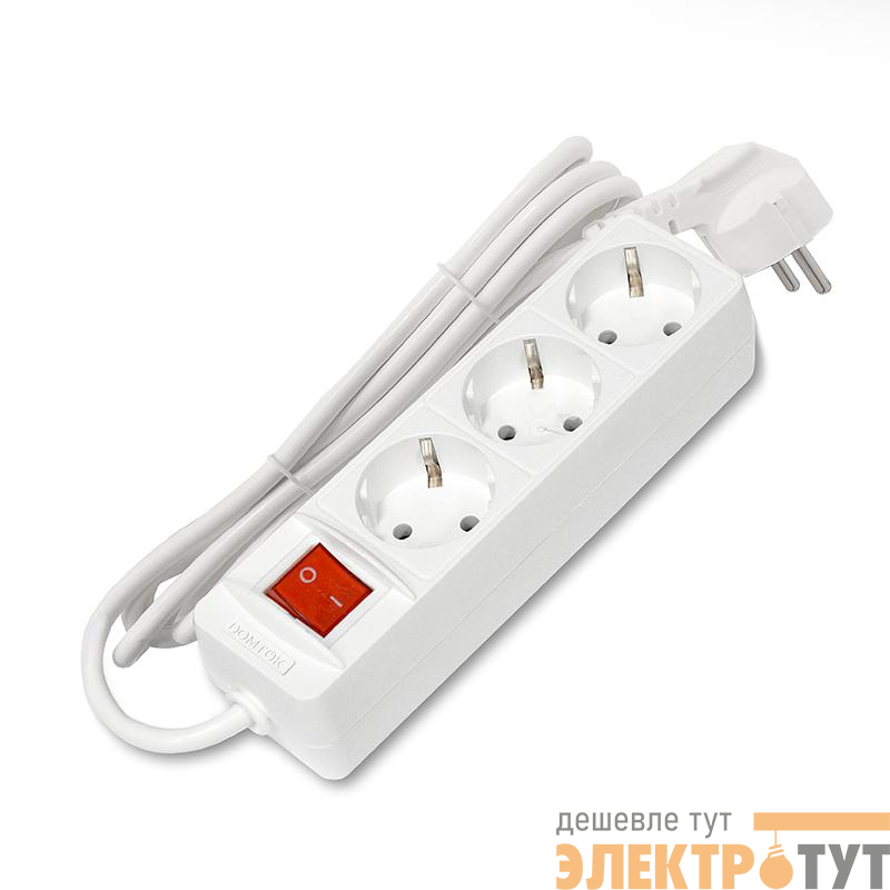 2379 | Удлинитель 3х1.5м с заземл. 16А IP20 3.5кВт ПВС 3х1 с выкл. бел. DOMTOK
