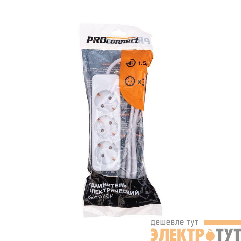 13-4208 | Удлинитель 3х1.5м с заземл. 3х0.75 бел. PROCONNECT