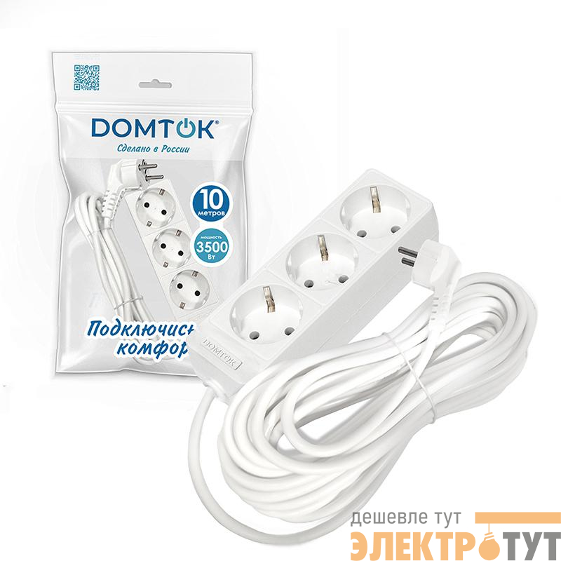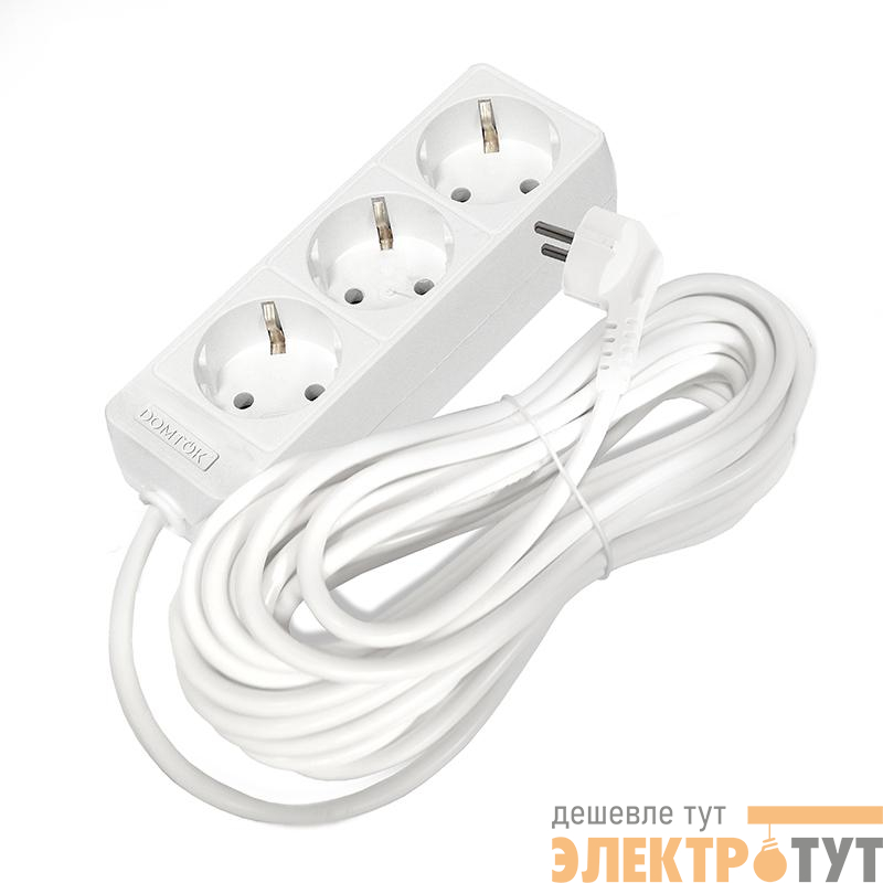 2390 | Удлинитель 3х10м с заземл. 16А IP20 3.5кВт ПВС 3х1 бел. DOMTOK