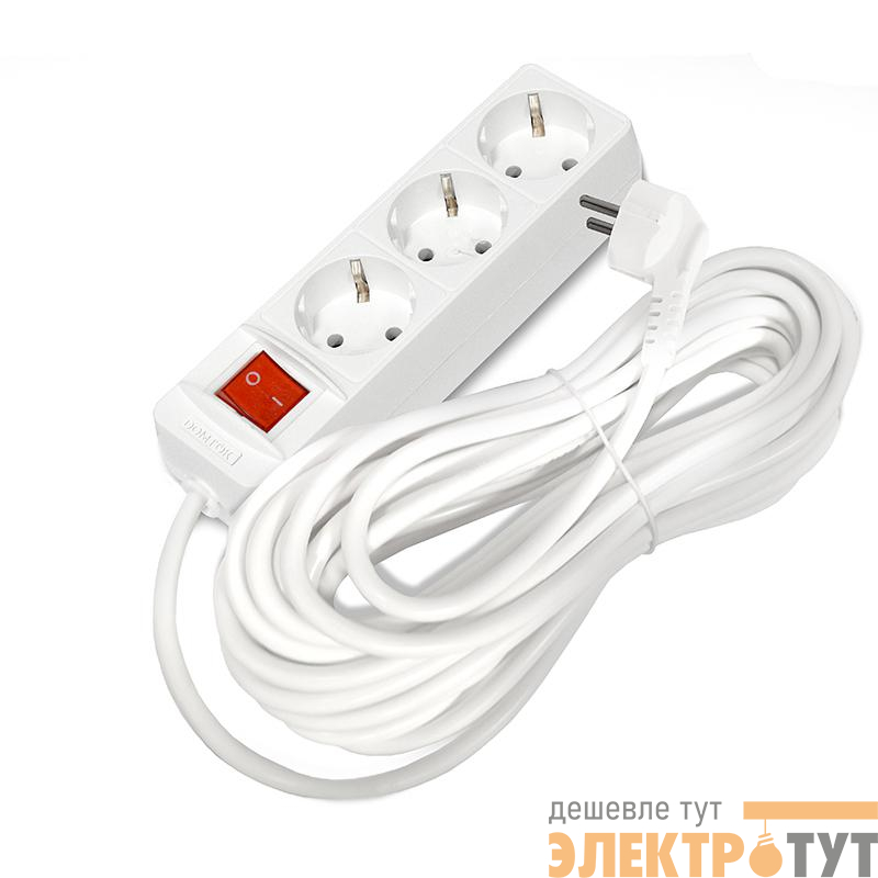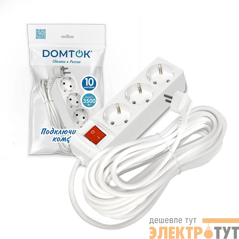 2380 | Удлинитель 3х10м с заземл. 16А IP20 3.5кВт ПВС 3х1 с выкл. бел. DOMTOK