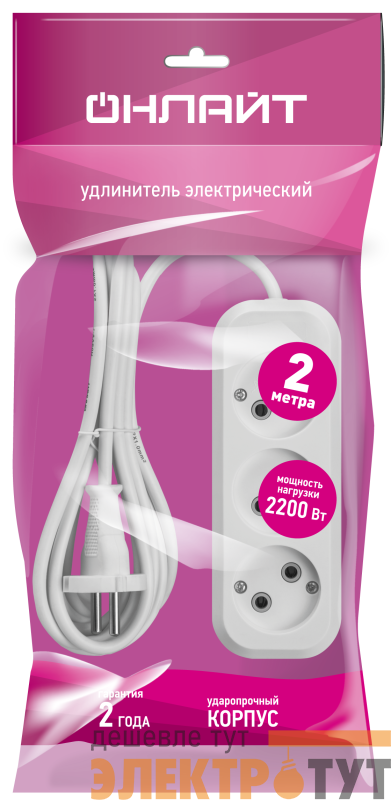 90507 | Удлинитель 3х2м без заземл. 10А IP20 90 507 OPE-S-03-200-X-2x1 бел. ОНЛАЙТ