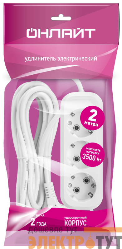 90516 | Удлинитель 3х2м с заземл. 16А IP20 90 516 OPE-S-03-200-E-3x1 бел. ОНЛАЙТ