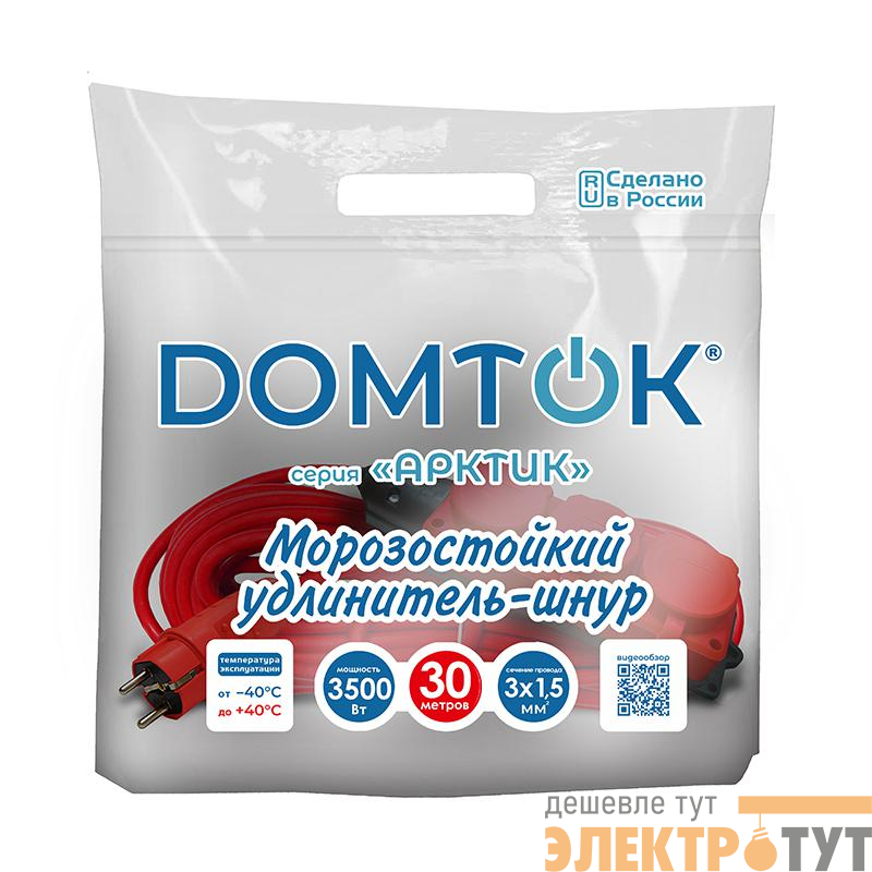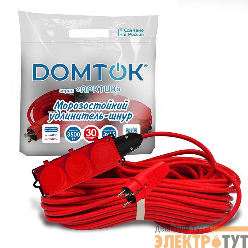 2601 | Удлинитель 3х30м с заземл. 16А IP44 3.5кВт КГ 3х1.5 с защ. крышкой АРКТИК морозостойкий DOMTOK