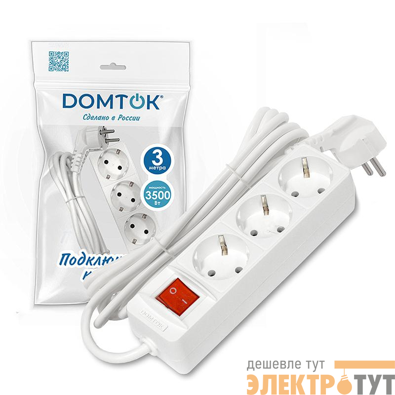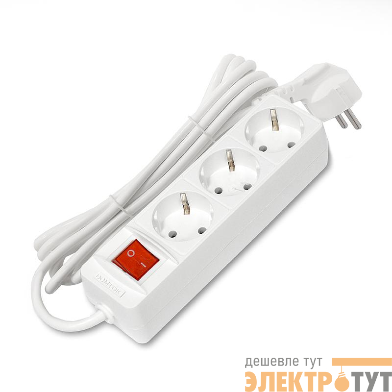 2381 | Удлинитель 3х3м с заземл. 16А IP20 3.5кВт ПВС 3х1 с выкл. бел. DOMTOK