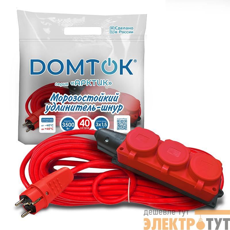 2602 | Удлинитель 3х40м с заземл. 16А IP44 3.5кВт КГ 3х1.5 с защ. крышкой АРКТИК морозостойкий DOMTOK