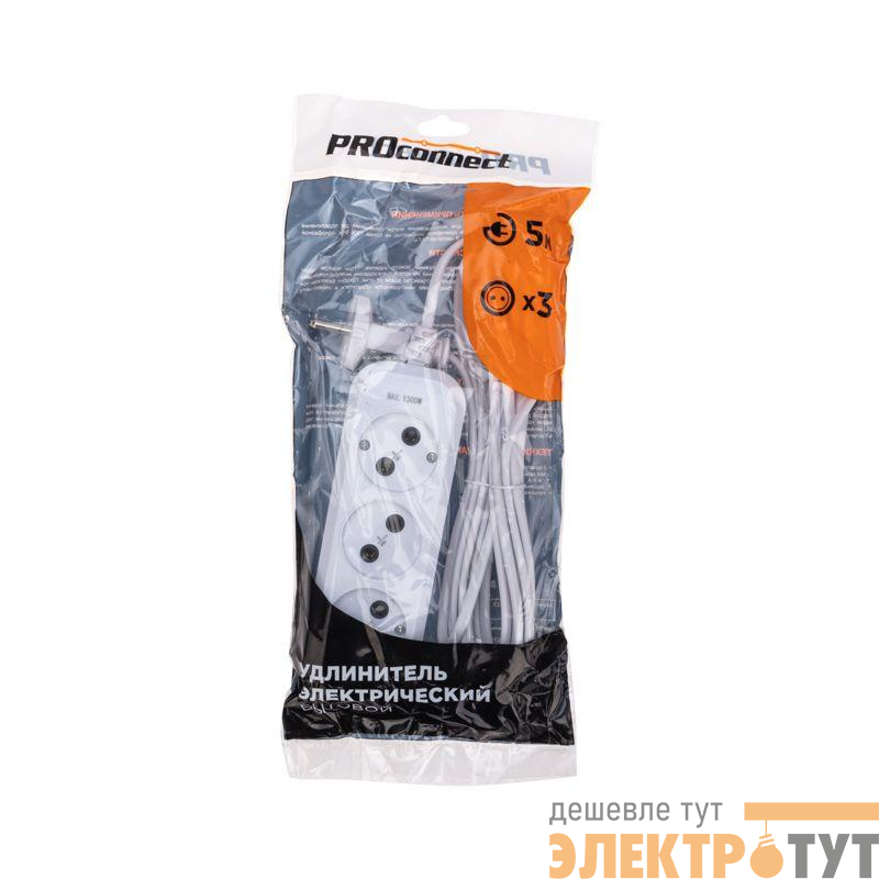 13-4207 | Удлинитель 3х5м без заземл. 2х0.75 бел. PROCONNECT