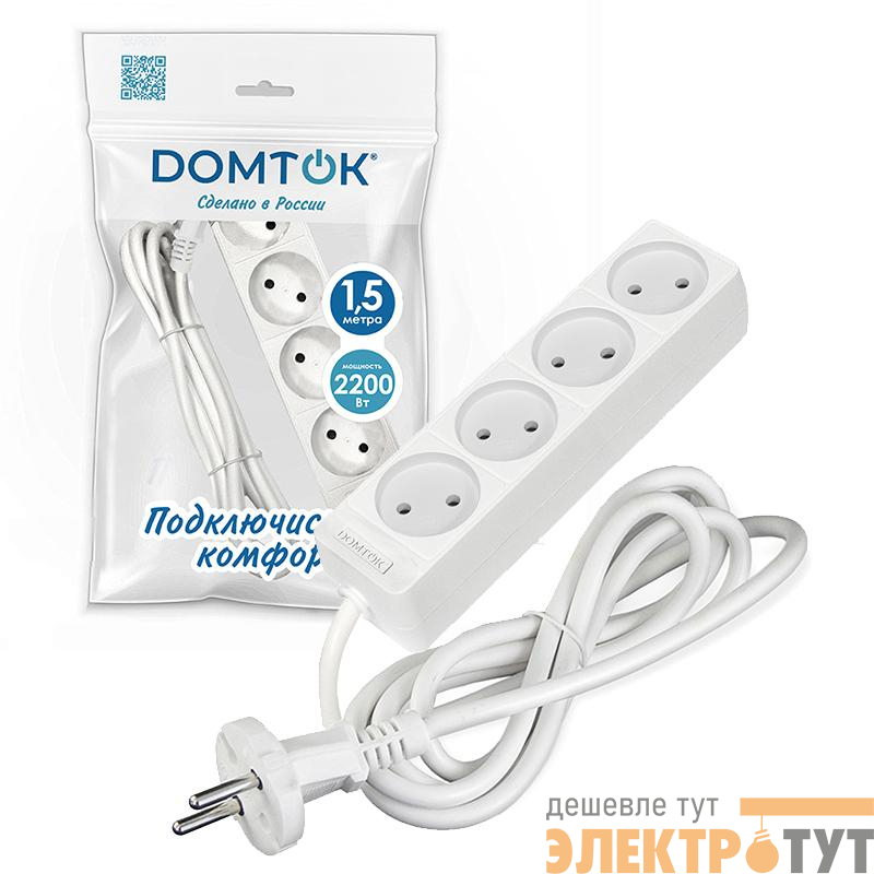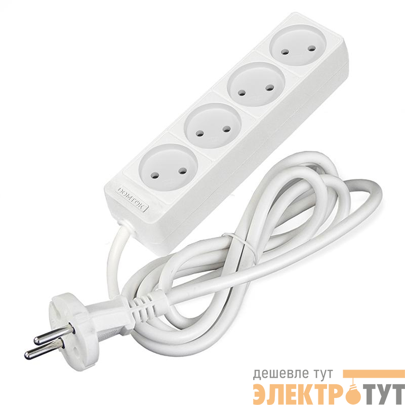 2354 | Удлинитель 4х1.5м без заземл. 10А IP20 2.2кВт ПВС 2х1 бел. DOMTOK