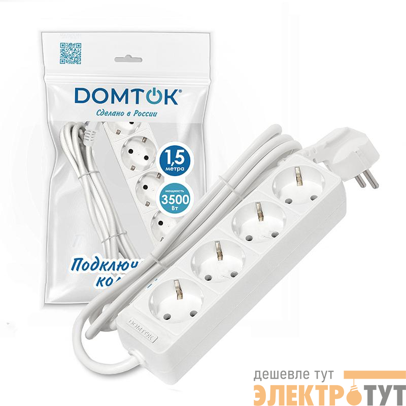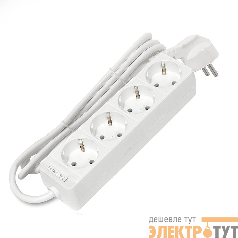2394 | Удлинитель 4х1.5м с заземл. 16А IP20 3.5кВт ПВС 3х1 бел. DOMTOK