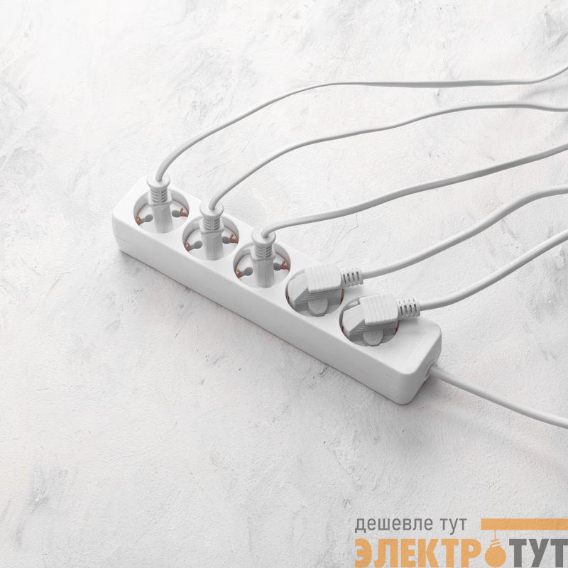 Наличие 5 гнезд позволяет одновременно подключить несколько электроприборов.