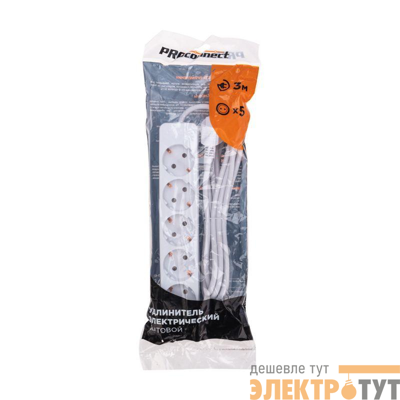 13-4212 | Удлинитель 5х3м с заземл. 3х0.75 бел. PROCONNECT