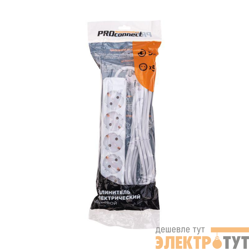 13-4213 | Удлинитель 5х5м с заземл. 3х0.75 бел. PROCONNECT