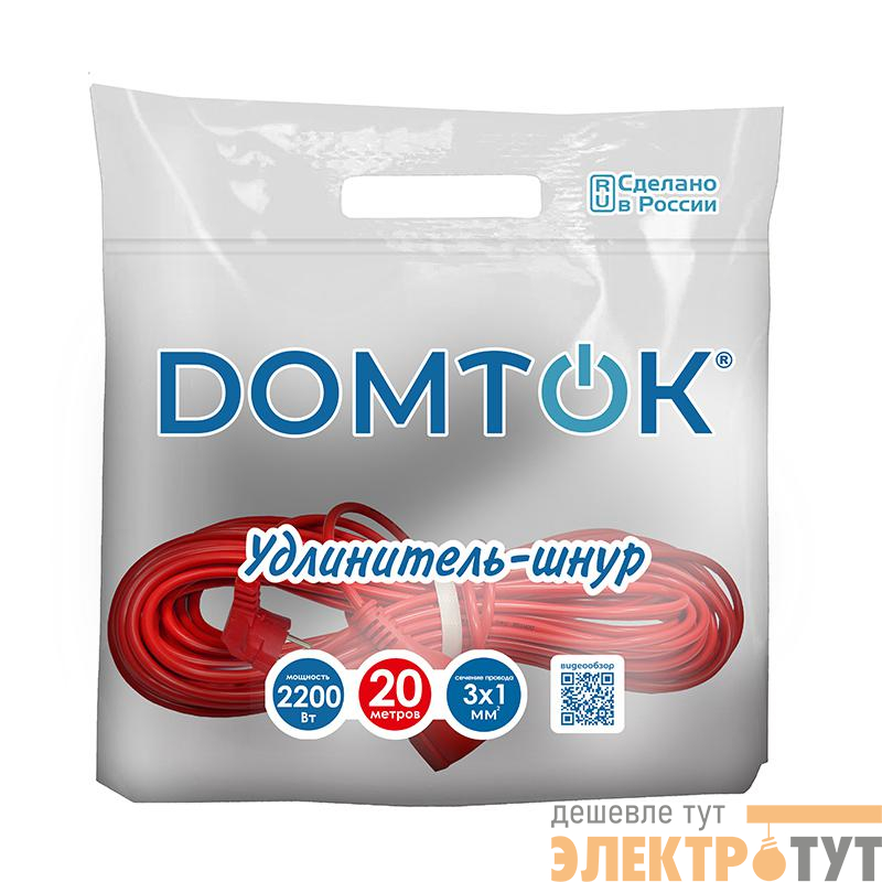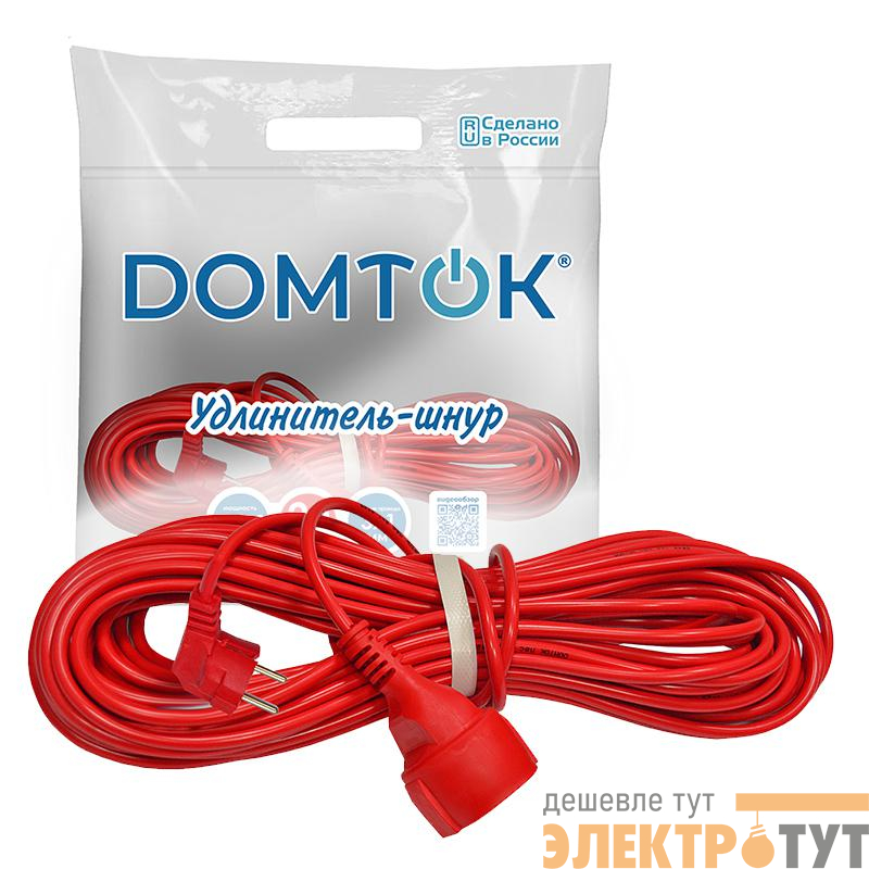 2493 | Удлинитель-шнур 1х20м с заземл. 10А IP20 2.2кВт ПВС 3х1 DOMTOK