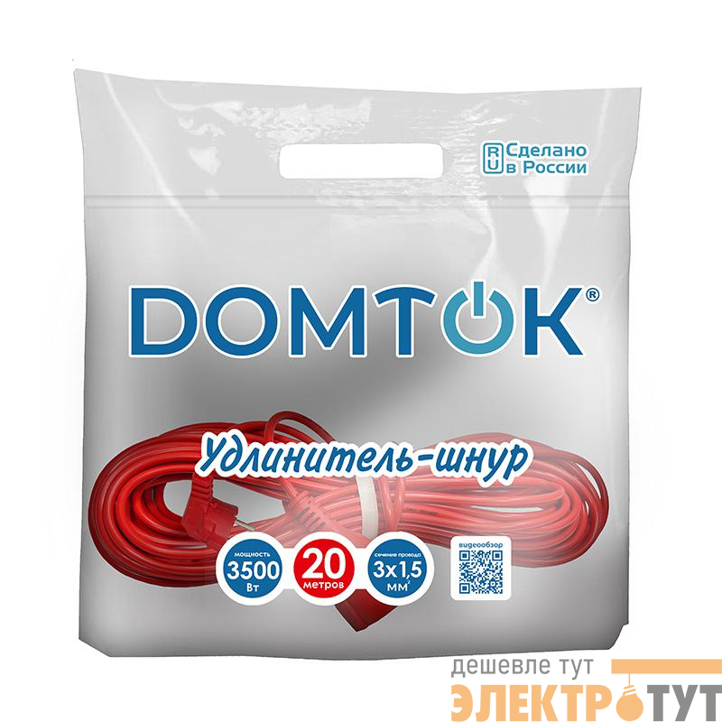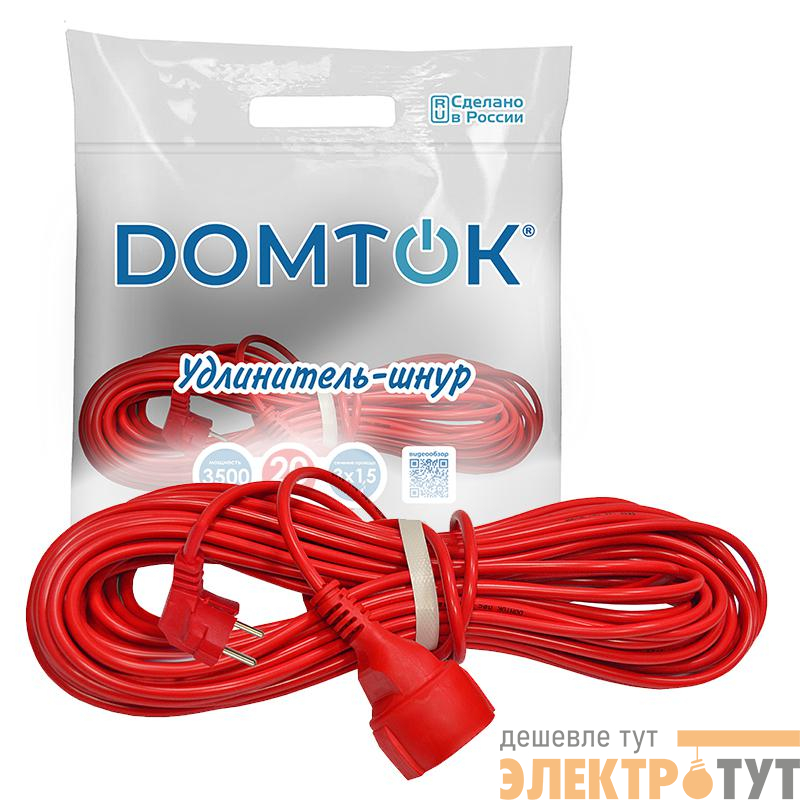 2497 | Удлинитель-шнур 1х20м с заземл. 16А IP20 3.5кВт ПВС 3х1.5 DOMTOK