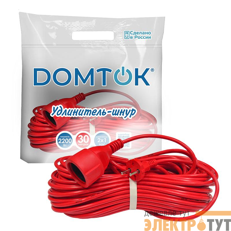 2490 | Удлинитель-шнур 1х30м без заземл. 10А IP20 2.2кВт ПВС 2х1 DOMTOK