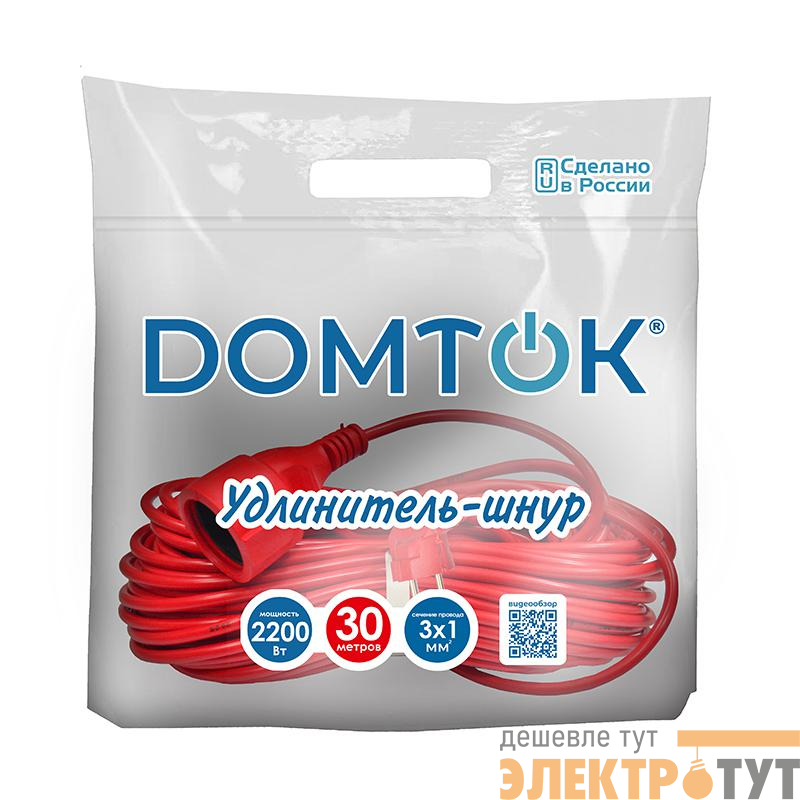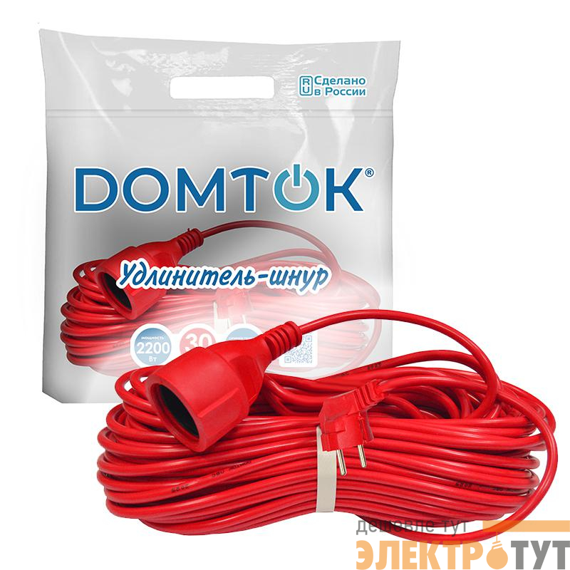 2494 | Удлинитель-шнур 1х30м с заземл. 10А IP20 2.2кВт ПВС 3х1 DOMTOK