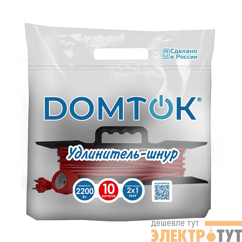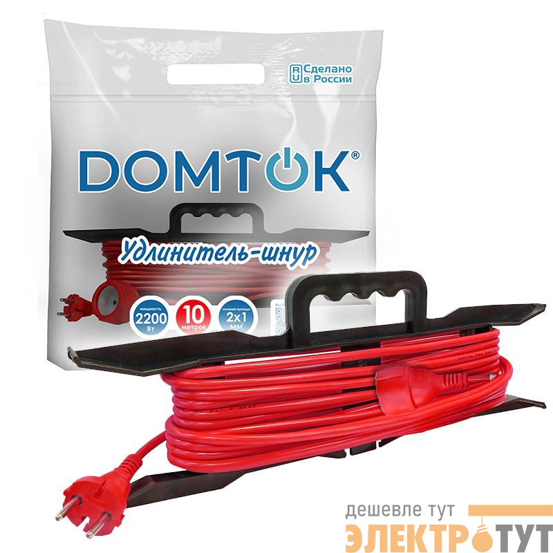 2473 | Удлинитель-шнур на рамке 1х10м без заземл. 10А IP20 2.2кВт ПВС 2х1 DOMTOK