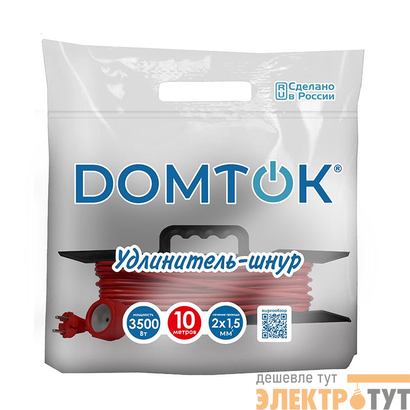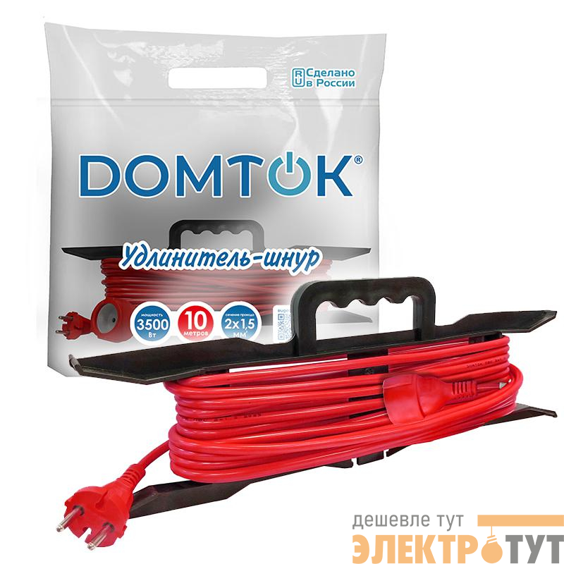 2402 | Удлинитель-шнур на рамке 1х10м без заземл. 16А IP20 3.5кВт ПВС 2х1.5 DOMTOK