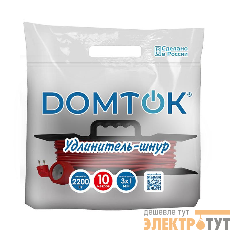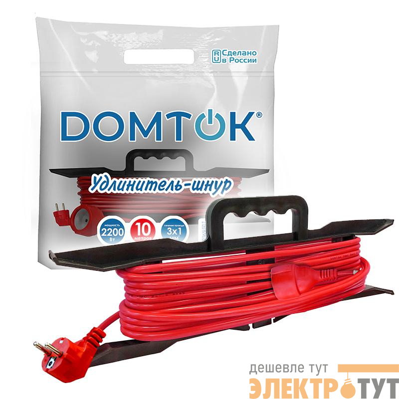2478 | Удлинитель-шнур на рамке 1х10м с заземл. 10А IP20 2.2кВт ПВС 3х1 DOMTOK