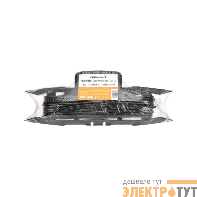 13-4913 | Удлинитель-шнур на рамке 1х10м с заземл. 6А 1.3кВт IP20 ПВС 3х0.75 черн. PROconnect