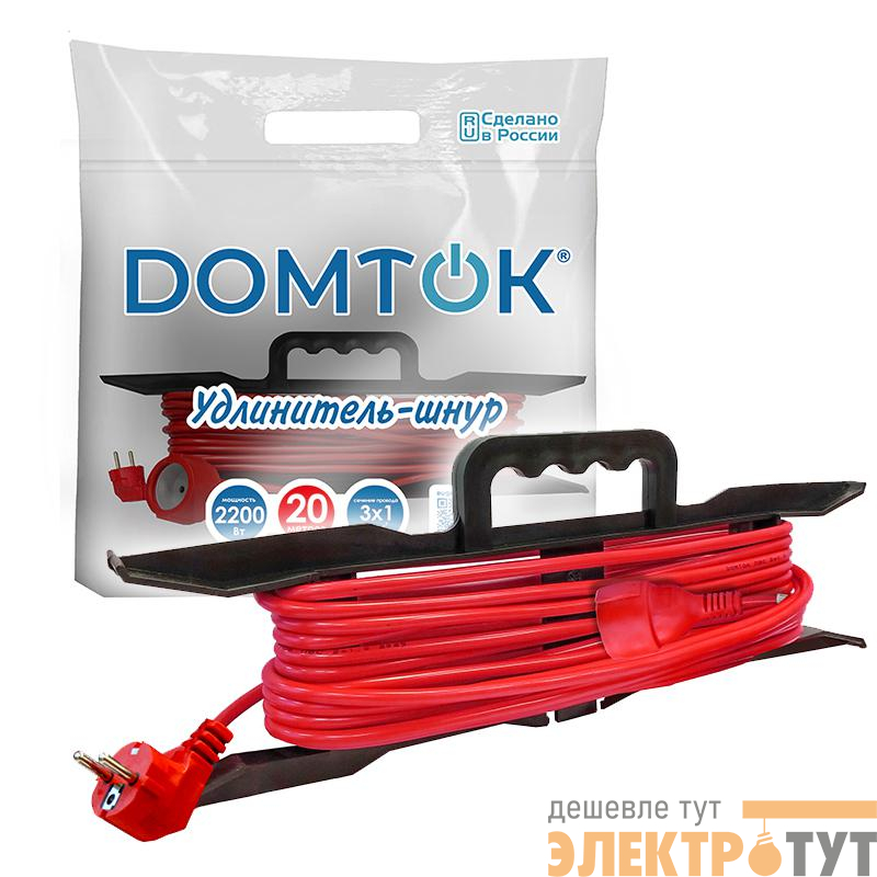 2479 | Удлинитель-шнур на рамке 1х20м с заземл. 10А IP20 2.2кВт ПВС 3х1 DOMTOK
