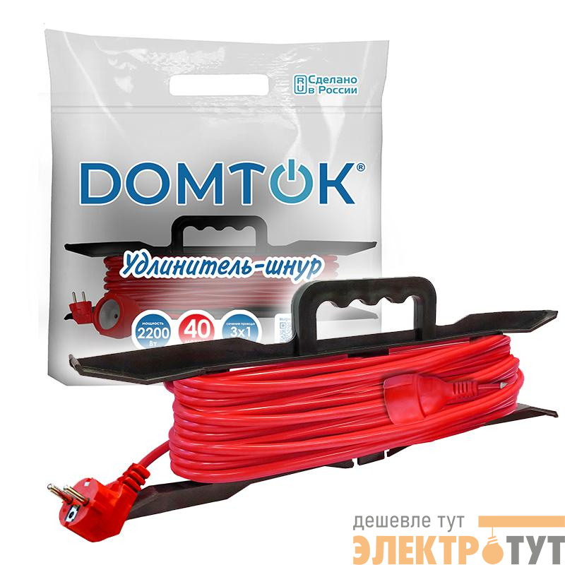 2481 | Удлинитель-шнур на рамке 1х40м с заземл. 10А IP20 2.2кВт ПВС 3х1 DOMTOK