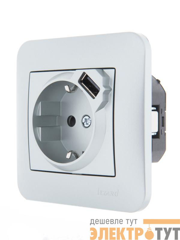 707-4388-181 | Розетка 1-м СП Karina 16А с заземл. с заряд. устройством USB механизм матов. серебр. LEZARD