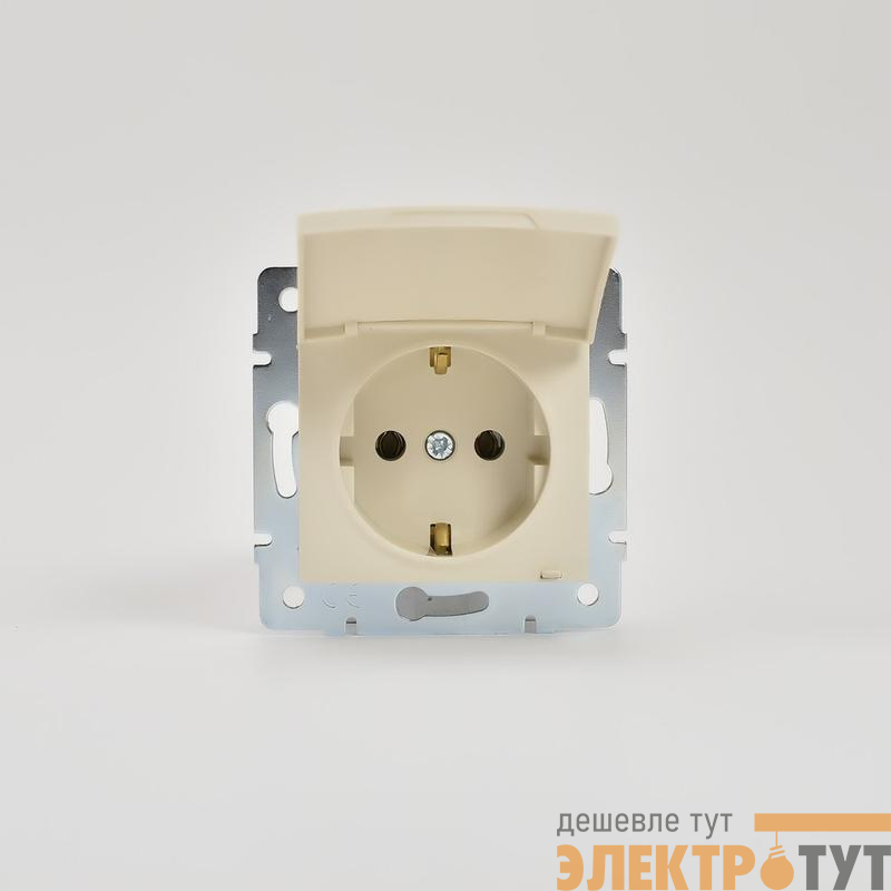 707-0388-123B | Механизм розетки 1-м СП KARINA с защ. крышкой термопласт с заземл. крем Lezard