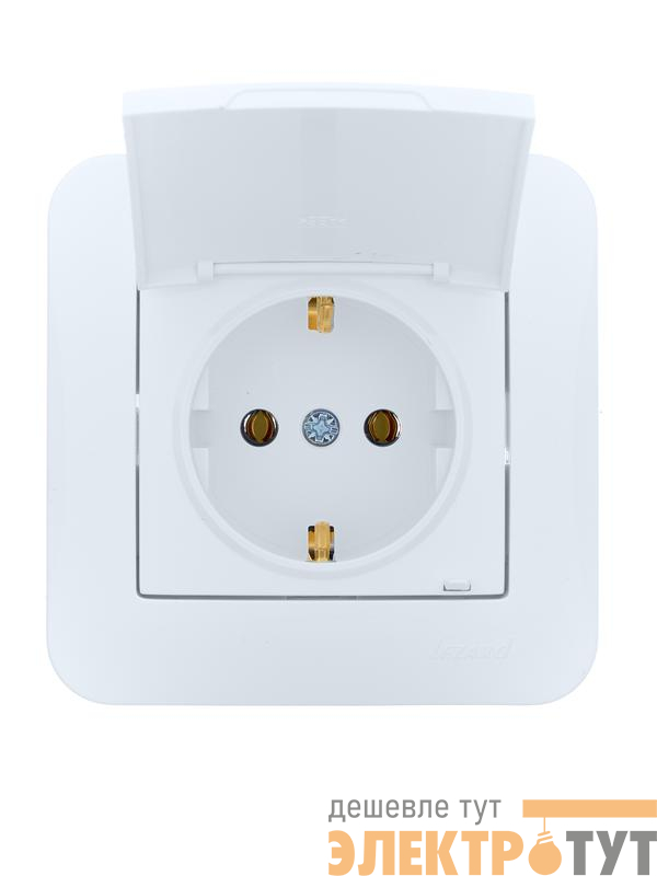 7081-0202-123B | Розетка 1-м СП ASTI 16А IP20 с заземл. с крышкой термопласт в сборе бел. LEZARD 7081-0202-123В