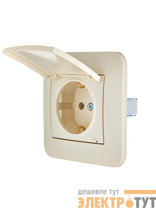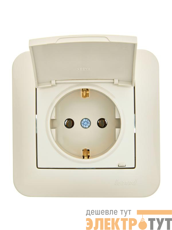 7081-0303-123B | Розетка 1-м СП ASTI 16А IP20 с заземл. с крышкой термопласт в сборе крем. LEZARD 7081-0303-123В