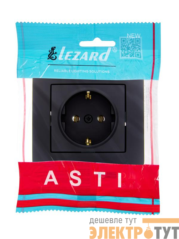 7081-4242-122B | Розетка 1-м СП ASTI 16А IP20 с заземл. термопласт в сборе черн. бархат. LEZARD
