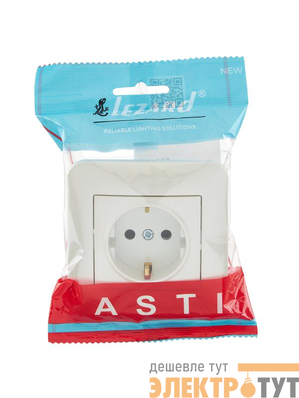 7081-3030-124B | Розетка 1-м СП ASTI 16А IP20 с заземл. защ. шторки термопласт в сборе жемчуж./бел. перламутр. LEZARD