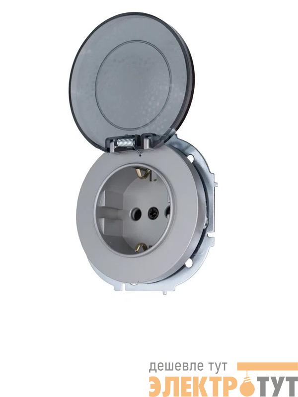 743-7488-123B | Розетка 1-м СП OSEN с заземл. с крышкой ПБТ механизм сер. матов. LEZARD