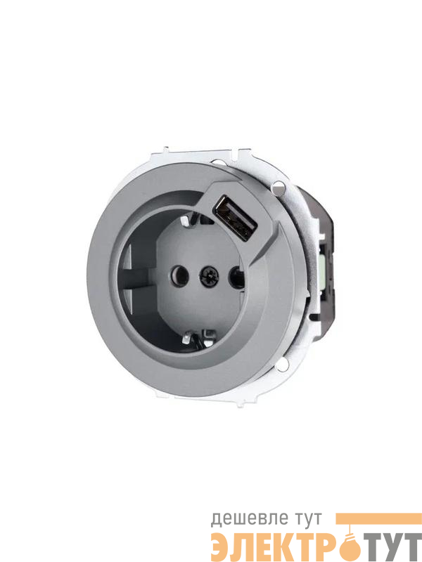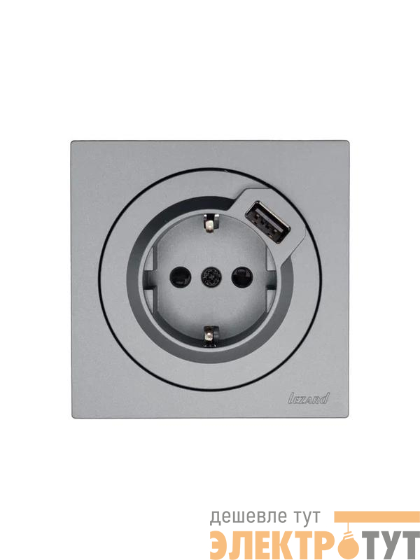 743-7488-181 | Розетка 1-м СП OSEN с заземл. + USB разъем механизм сер. матов. LEZARD