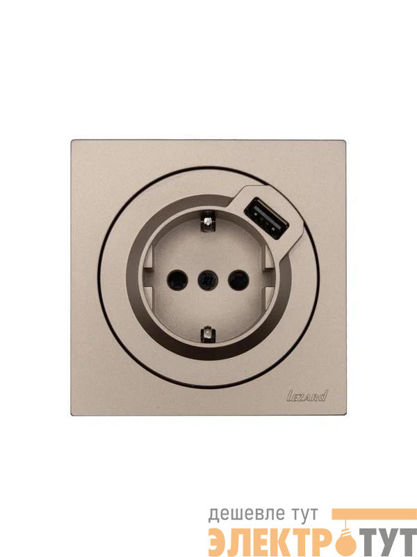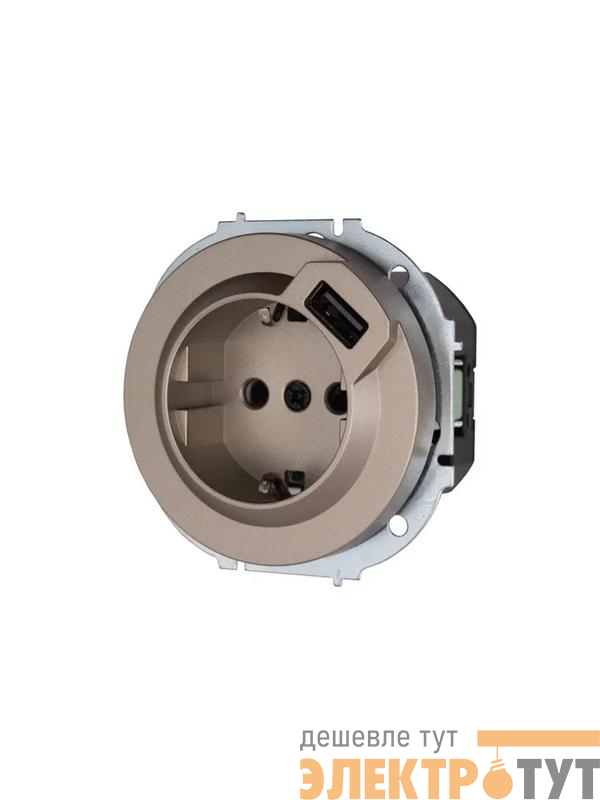 743-3788-181 | Розетка 1-м СП OSEN с заземл. + USB разъем механизм титан LEZARD