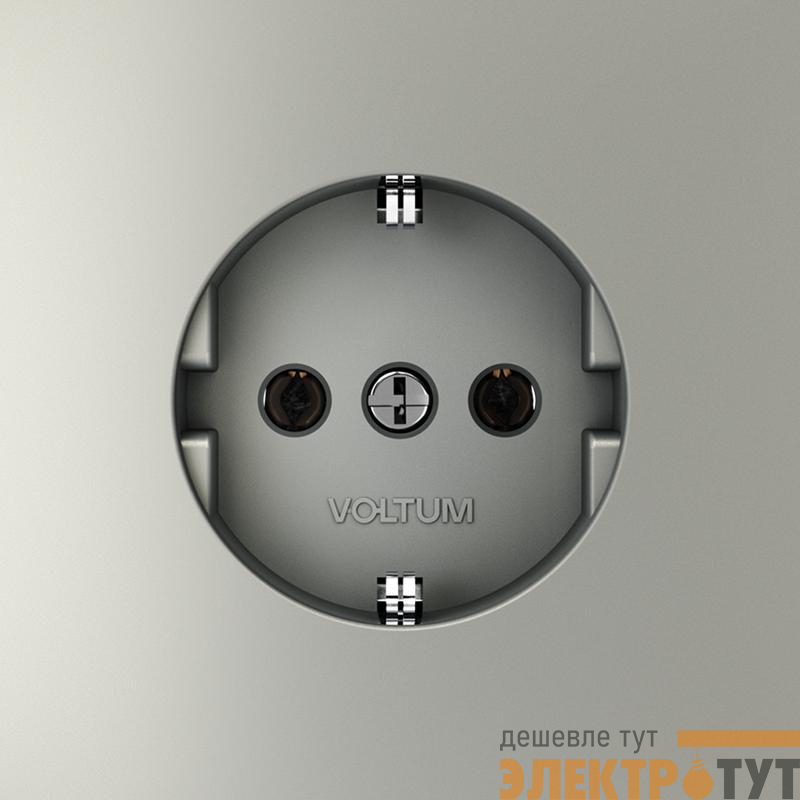Место установки. Простота установки и демонтажа, стильный дизайн и высокое качество делают розетки Voltum идеальным выбором для дома, офиса или любых других помещений, соответствующих инструкции по эксплуатации. Корпус. Внешние накладки и корпус выполнены из поликарбоната — долговечного и безопасного материала. Он не разлагается под действием ультрафиолета и стойко выдерживает повышенные температуры, вызванные протекающими токами. Конструктивные особенности. Контактные пары выполнены из бронзы, а заземляющие контакты — с дополнительным гальваническим покрытием. Бронза обеспечивает высокую безопасность при подключении электроприборов и эффективную бесперебойную передачу тока, сохраняя передаточное усилие, что повышает срок безотказной эксплуатации.