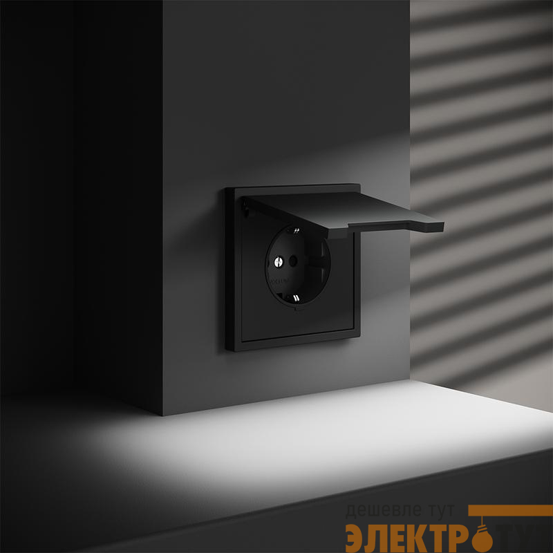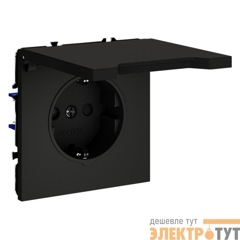 VLS040308 | Розетка 1-м СП S70 16А с заземл. защ. шторки + крышка механизм черн. матов. Voltum