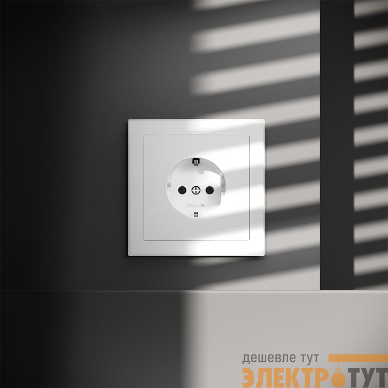 Место установки. Простота установки и демонтажа, стильный дизайн и высокое качество делают розетки Voltum идеальным выбором для дома, офиса или любых других помещений, соответствующих инструкции по эксплуатации. Корпус. Внешние накладки и корпус выполнены из поликарбоната — долговечного и безопасного материала. Он не разлагается под действием ультрафиолета и стойко выдерживает повышенные температуры, вызванные протекающими токами. Конструктивные особенности. Контактные пары выполнены из бронзы, а заземляющие контакты — с дополнительным гальваническим покрытием. Бронза обеспечивает высокую безопасность при подключении электроприборов и эффективную бесперебойную передачу тока, сохраняя передаточное усилие, что повышает срок безотказной эксплуатации.
