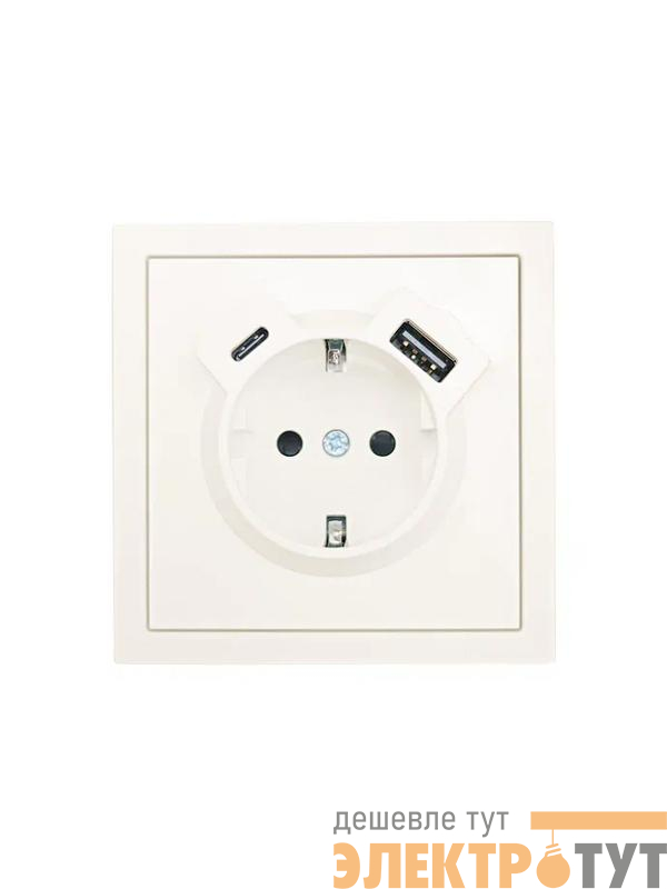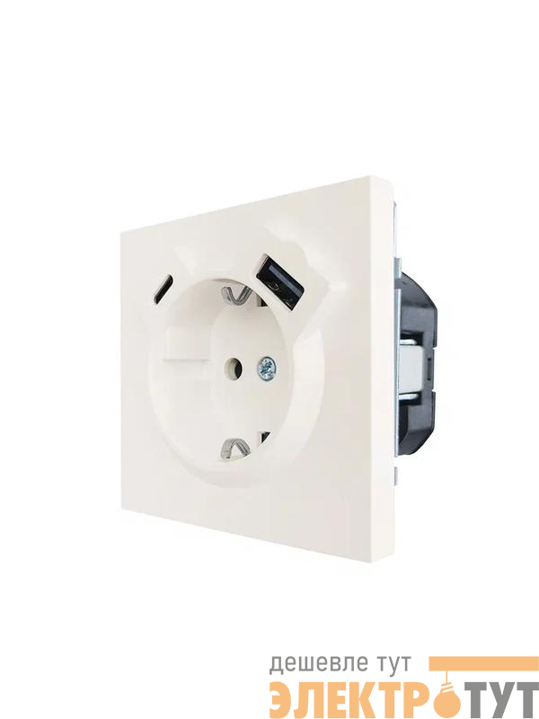 704-9088-181TC | Розетка 1-мест. с/з Type-C+USB разъем СП ZIMA IP20 слон. кость LEZARD
